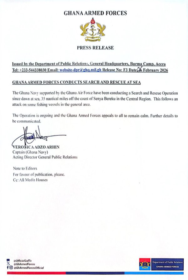 The statement was released and signed by Veronica Adzo Arhin, Captain (Ghana Navy), Acting Director General of Public Relations.